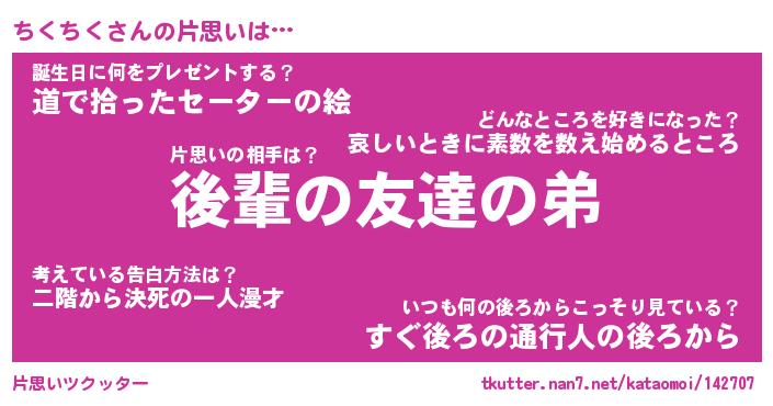 | ヒーロー風カッコイイあだ名 | 『スーパーチクチク』『銀牙騎士チク』 |