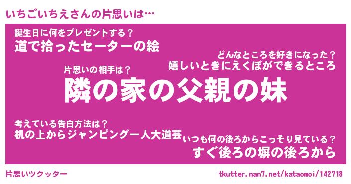 | 女子向けラノベタイトル風あだ名 | 『(仮)いちごいちえのやんごとなき事情』 |