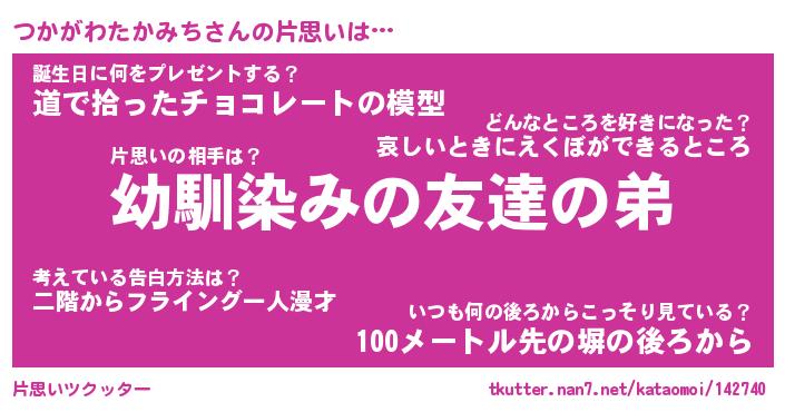 | 女子向けラノベタイトル風あだ名 | 『(仮)つかがわたかみちのやんごとなき事情』 |