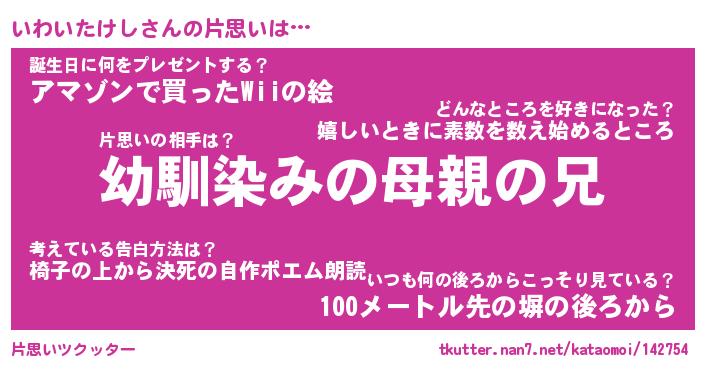 | 女子向けラノベタイトル風あだ名 | 『(仮)いわいたけしのやんごとなき事情』 |