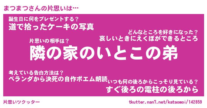 | ヘコむあだ名 | 『まつにゅー』『豆乳』『まつ太郎』 |