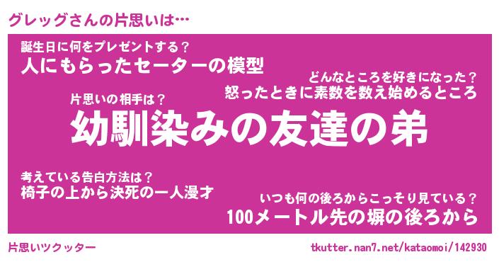| 男性向けラノベタイトル風あだ名 | 『グレッグの憂鬱』 |
