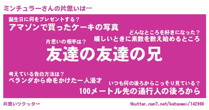 | ヘコむあだ名 | 『ミンもー』『なまこ酢』『ミンを』 |