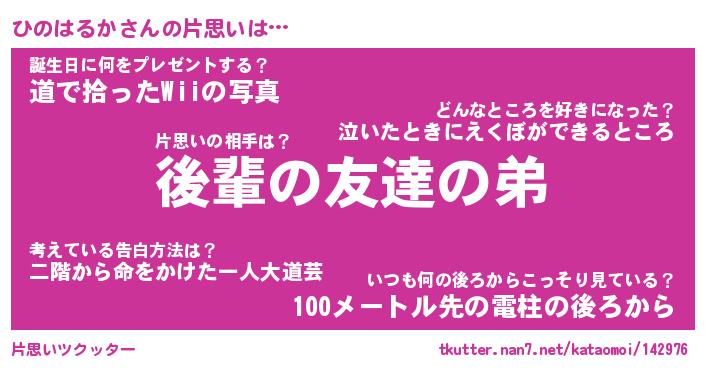 | ヘコむあだ名 | 『ひのっふぃ~』『なまこ酢』 |
