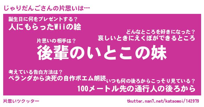 | ヒーロー風カッコイイあだ名 | 『スーパージャリダンゴ』『暗黒騎士ジャ』 |
