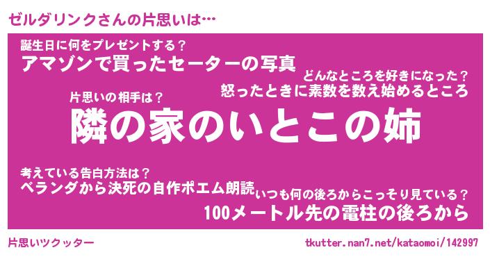 | ヘコむあだ名 | 『ゼルにゅー』『なまこ酢』『ゼルお』 |