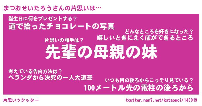 | ツイッター | まつおせいたろうさんのツイッターID『katatsumuri_man』 |
