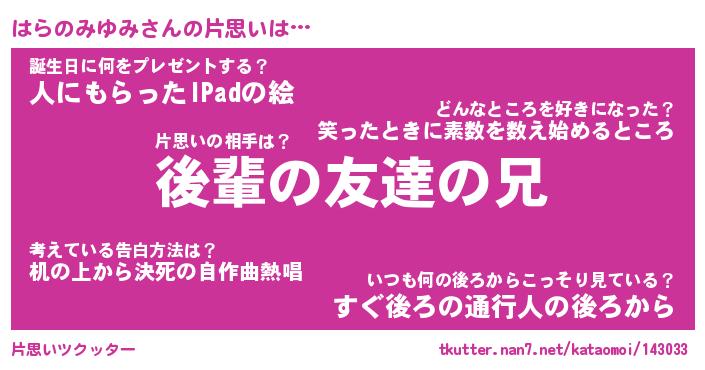 | 意味不明あだ名 | 『ペロリンはらのみゆみ』 |
