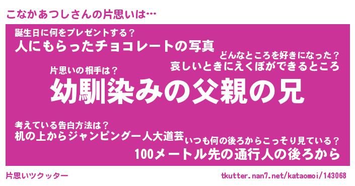 | 肩書あだ名 | 『こなかあつしCEO』『こなかあつし団長』 |