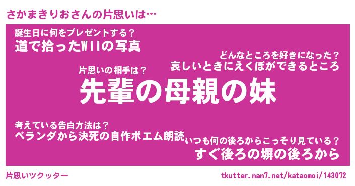 | ヘコむあだ名 | 『さかにー』『豆乳』『さかっ子』 |