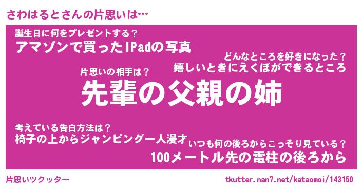| ファンタジー風あだ名 | 『サワフェル』『エターナルサワハルトー』 |