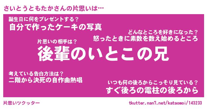 | ヘコむあだ名 | 『さいにゅー』『つくし』『さいを』 |