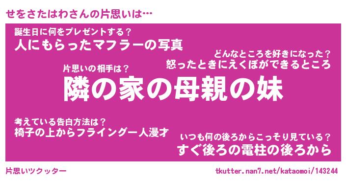 | ポケモン風あだ名 | 『セヲチュウ』『セヲサダネ』 |