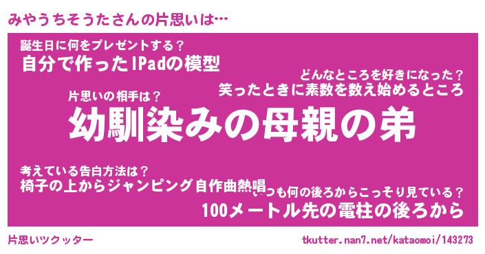 | 恥ずかしいあだ名 | 『プリティーみやうちそうた』『みやちん』 |