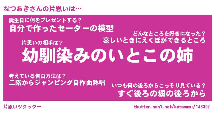 | 胡散臭い通販商品みたいなあだ名 | 『必ず成功する水晶球…その名も「なつあき」』 |