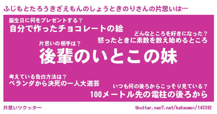 | ツイッター | ふじもとたろうきざえもんのしょうときのりさんのツイッターID『namakemono_kun』 |