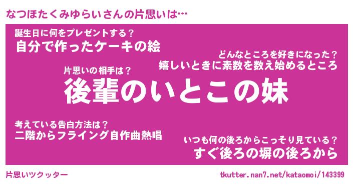 | ヘコむあだ名 | 『なつもー』『つくし』『なつっ子』 |