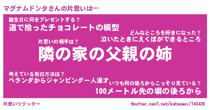 | 男性向けラノベタイトル風あだ名 | 『マグナムドンタの憂鬱』 |