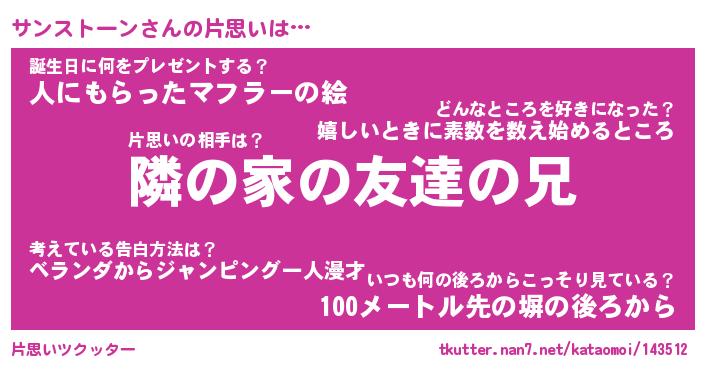 | 男性向けラノベタイトル風あだ名 | 『サンストーンの憂鬱』 |