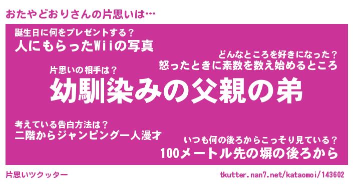 | ヘコむあだ名 | 『おたにゅー』『つくし』『おたお』 |