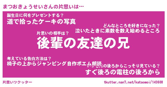 | ツイッター | まつおきょうせいさんのツイッターID『dendenmushi_nyan』 |