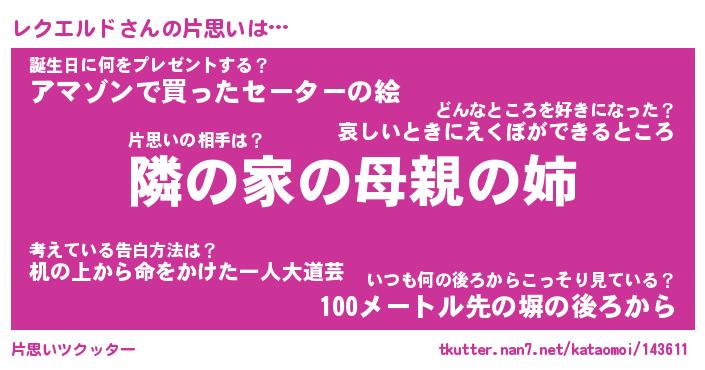 | ファンタジー風あだ名 | 『レクフェル』『エターナルレクエルドー』 |