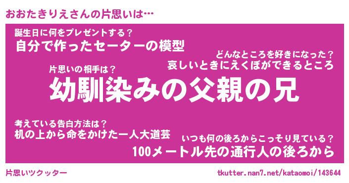 | ヒーロー風カッコイイあだ名 | 『スーパーオオタキリエ』『幻影騎士オオ』 |