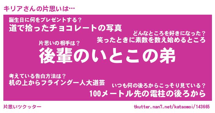 | ヘコむあだ名 | 『キリにゅー』『なまこ酢』 |