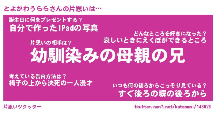 | 胡散臭い通販商品みたいなあだ名 | 『必ず成功するブレスレット…その名も「とよかわうらら」』 |