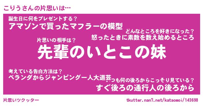 | 男性向けラノベタイトル風あだ名 | 『こりうの憂鬱』 |