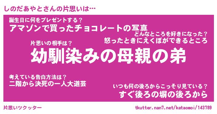 | 男性向けラノベタイトル風あだ名 | 『しのだあやとの憂鬱』 |