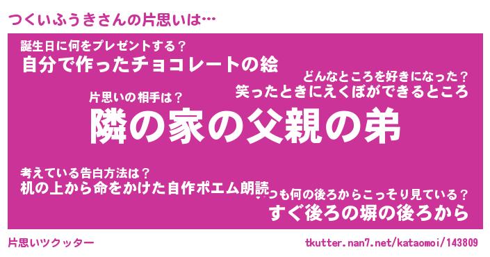 | 男性向けラノベタイトル風あだ名 | 『つくいふうきの憂鬱』 |