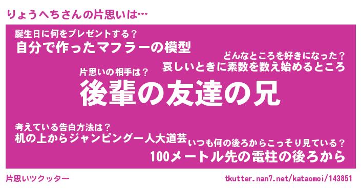 | ヘコむあだ名 | 『りょっふぃ~』『つくし』 |