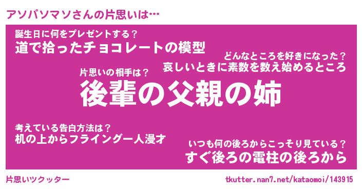 | ポケモン風あだ名 | 『アソチュウ』『アソパダネ』 |