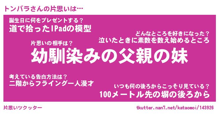 | 意味不明あだ名 | 『ペロリントンバラ』『永久保存トンバラ』 |