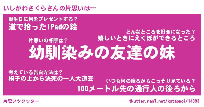 | 男性向けラノベタイトル風あだ名 | 『いしかわさくらの憂鬱』 |