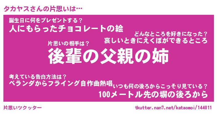 | 意味不明あだ名 | 『ペロリンタカヤス』『永久保存タカヤス』 |