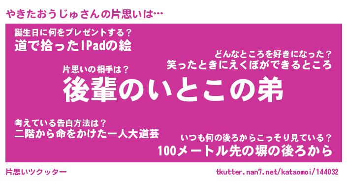 | ヘコむあだ名 | 『やきもー』『豆乳』『やき太郎』 |