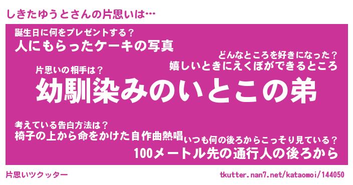 | 男性向けラノベタイトル風あだ名 | 『しきたゆうとの憂鬱』 |