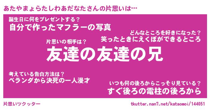 | ツイッター | あたやまょらたしわあだなたさんのツイッターID『fukuyoka_nyan』 |
