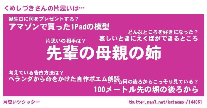 | ヘコむあだ名 | 『くめにー』『なまこ酢』『くめっぺ』 |