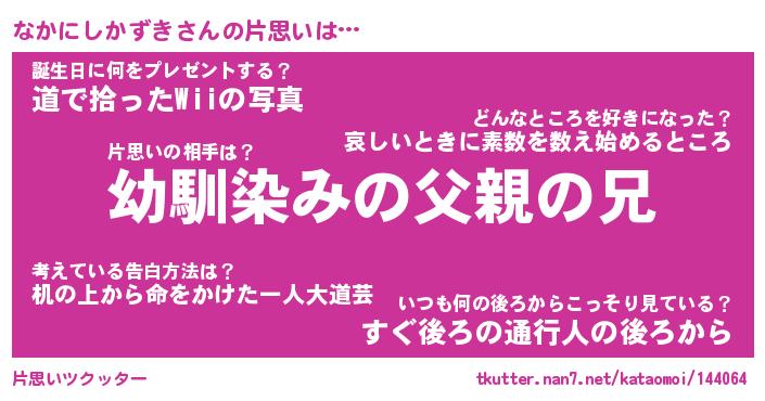 | 胡散臭い通販商品みたいなあだ名 | 『必ず成功するブレスレット…その名も「なかにしかずき」』 |