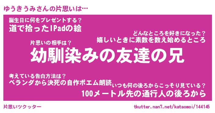 | 女子向けラノベタイトル風あだ名 | 『(仮)ゆうきうみのやんごとなき事情』 |