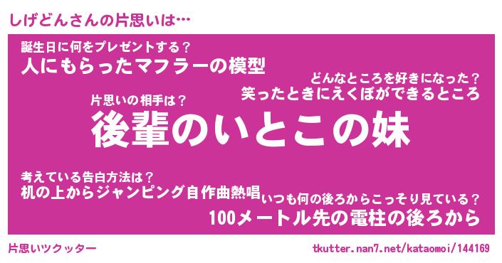 | 意味不明あだ名 | 『ペロリンしげどん』『永久保存しげどん』 |