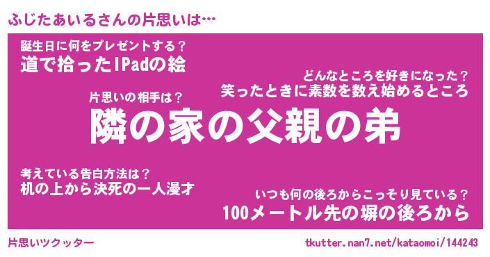| 意味不明あだ名 | 『ペロリンふじたあいる』 |