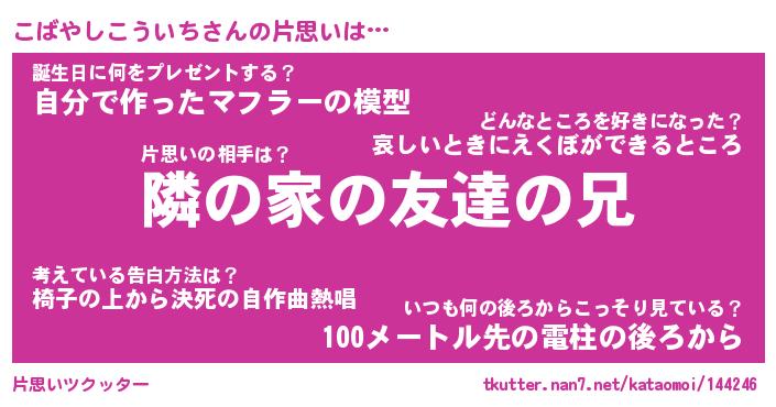 | 胡散臭い通販商品みたいなあだ名 | 『必ず成功する霊験あらたかなお札…その名も「こばやしこういち」』 |