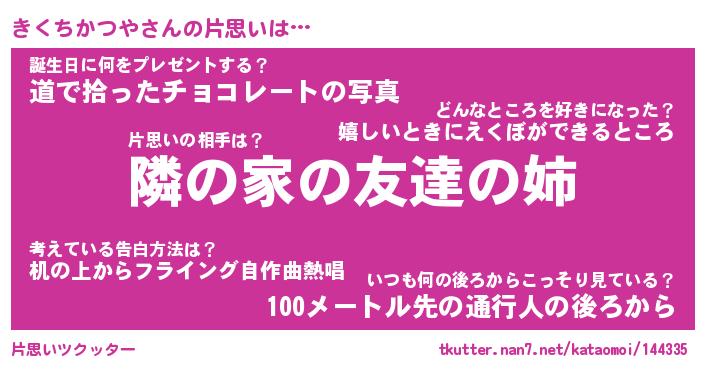 | 男性向けラノベタイトル風あだ名 | 『きくちかつやの憂鬱』 |