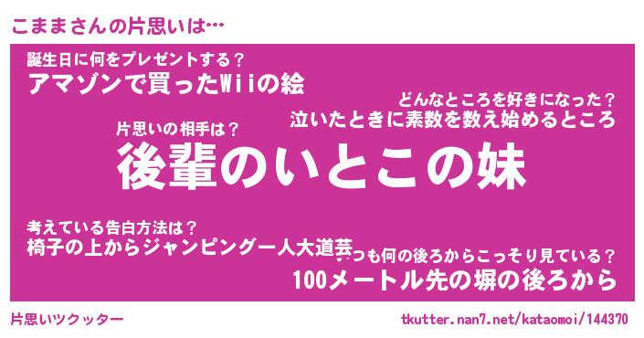 | ヘコむあだ名 | 『こまもー』『なまこ酢』『こまっぺ』 |