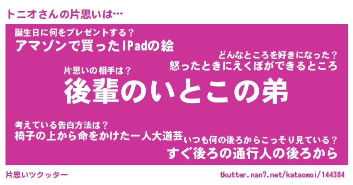 | ヘコむあだ名 | 『トニにゅー』『なまこ酢』 |
