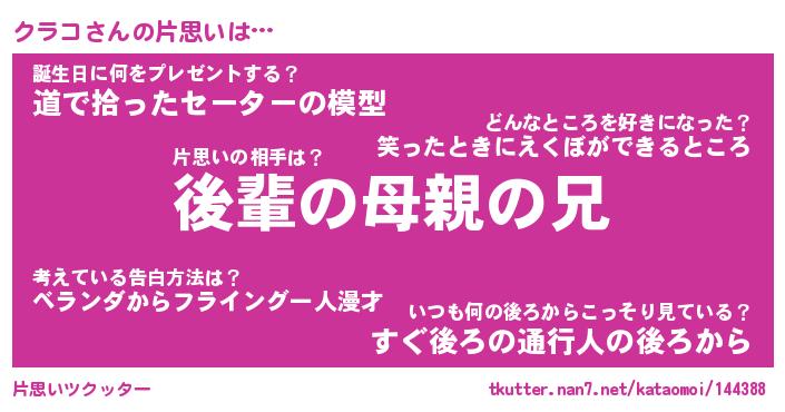 | ヘコむあだ名 | 『クラにー』『豆乳』『クラ太郎』 |